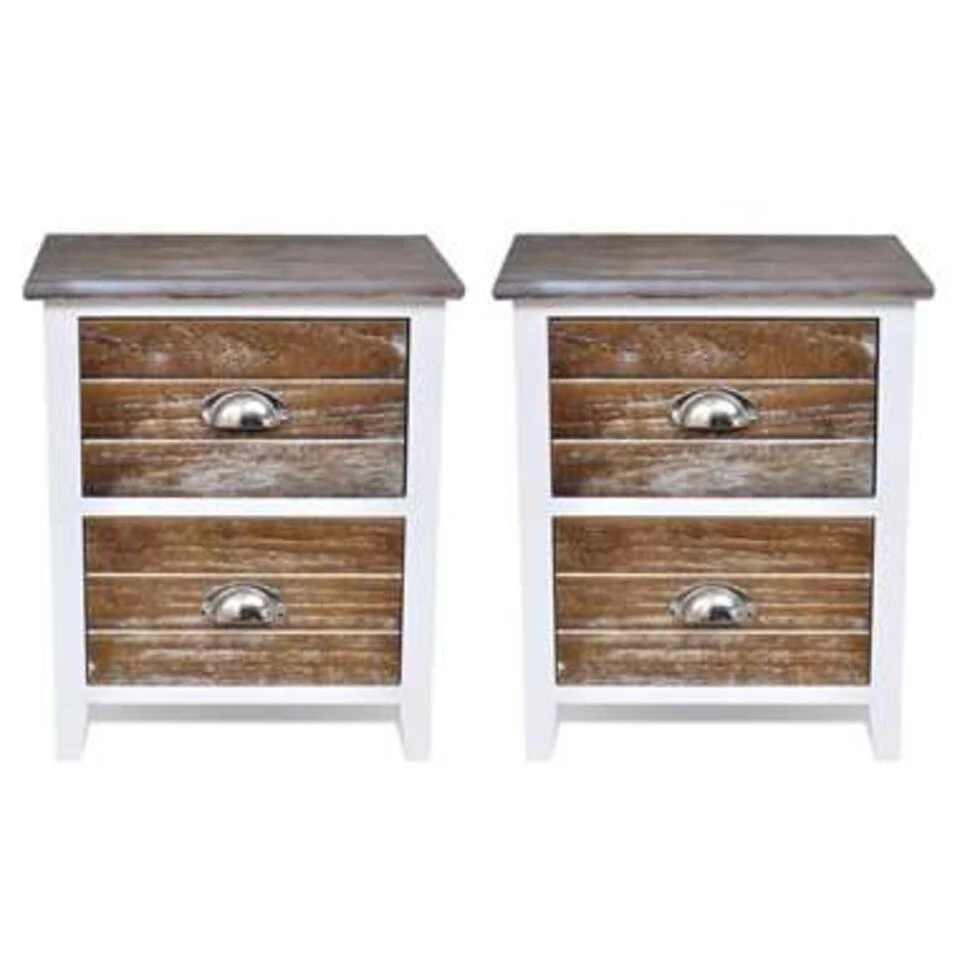 Deze nachtkastjes met 2 lades hebben een eenvoudig maar stijlvol ontwerp en kunnen ook worden gebruikt als bijzettafeltjes of telefoontafels.