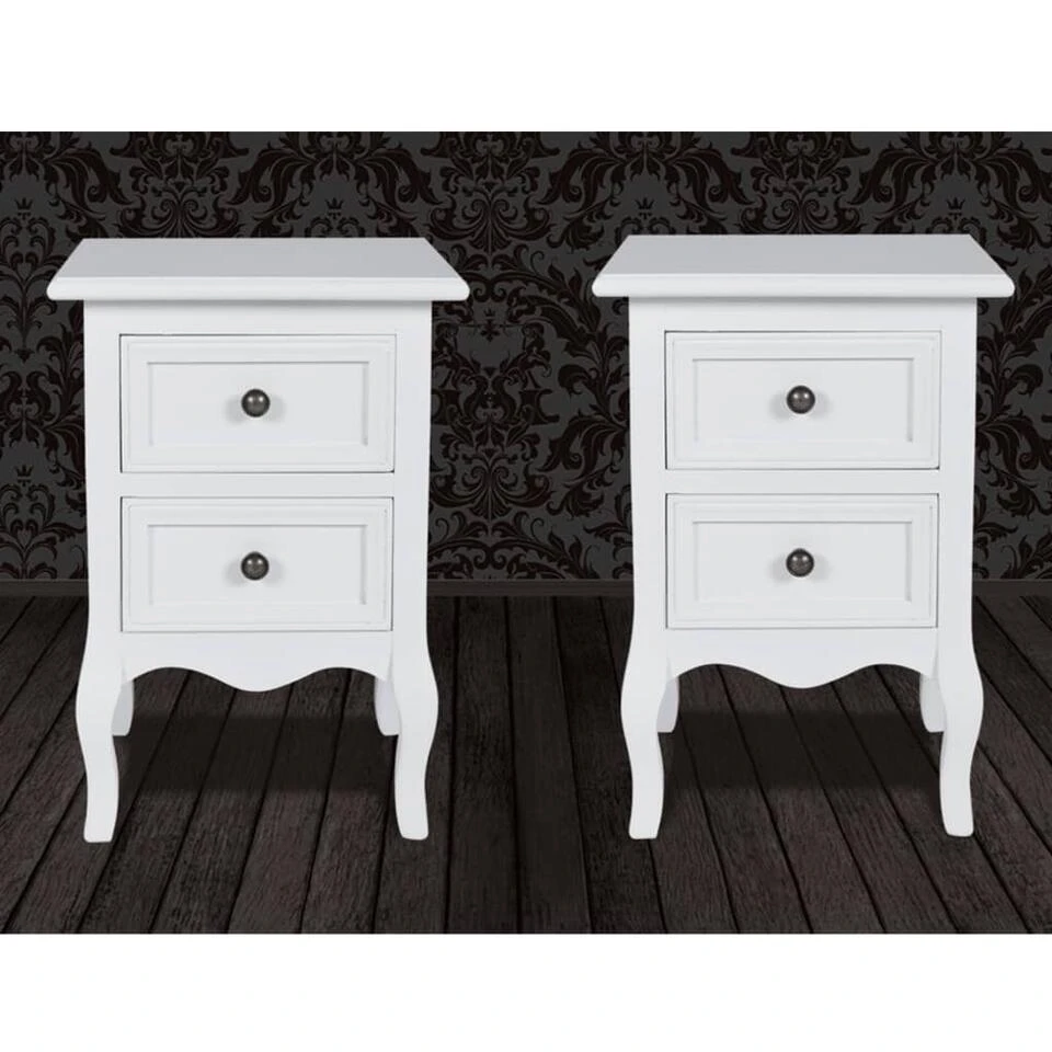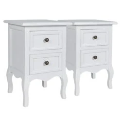 Deze set van 2 nachtkastjes in vintage stijl wordt geleverd met lades zodat je slaapkamerspulletjes altijd bij de hand hebt.