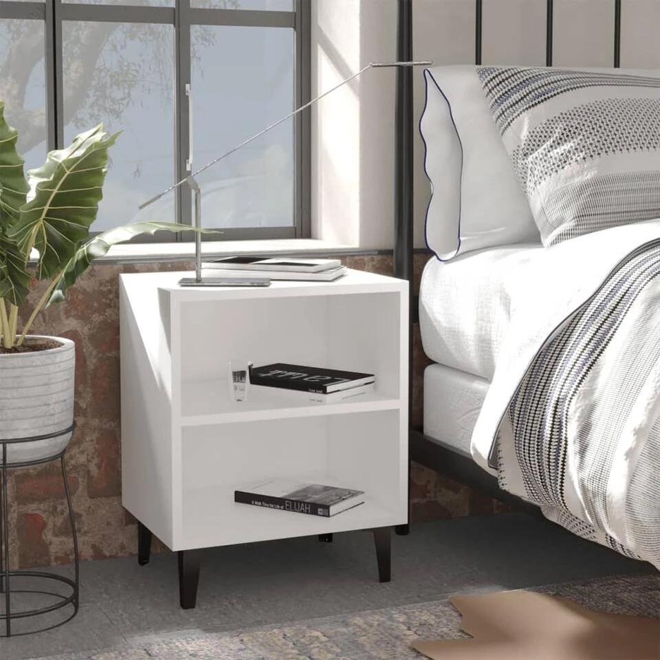 Het nachtkastje heeft metalen poten en is stabiel en stevig. Daarnaast is het uitgerust met 2 schappen, die voldoende opbergruimte bieden om je spullen overzichtelijk en binnen handbereik te houden. Het kastje is gemakkelijk schoon te maken met een vochtige doek.