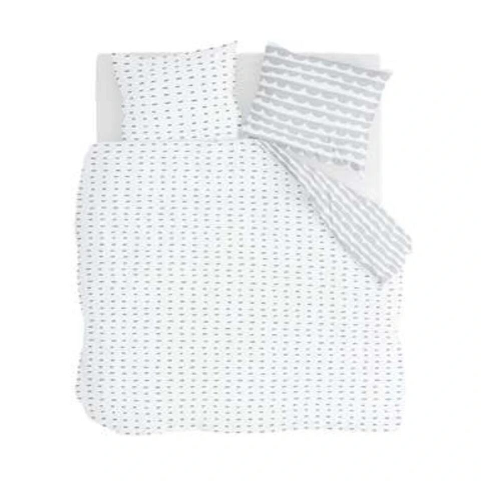 In een lichte slaapkamer breng je met gemak sfeer aan met een dit speelse dekbedovertrek. Het dekbedovertrek heeft aan de voorzijde lichtgrijze streepjes op een witte ondergrond en aan de achterzijde lichtgrijze golfjes op een witte achtergrond. Dat maakt het stoer en speels tegelijk.
