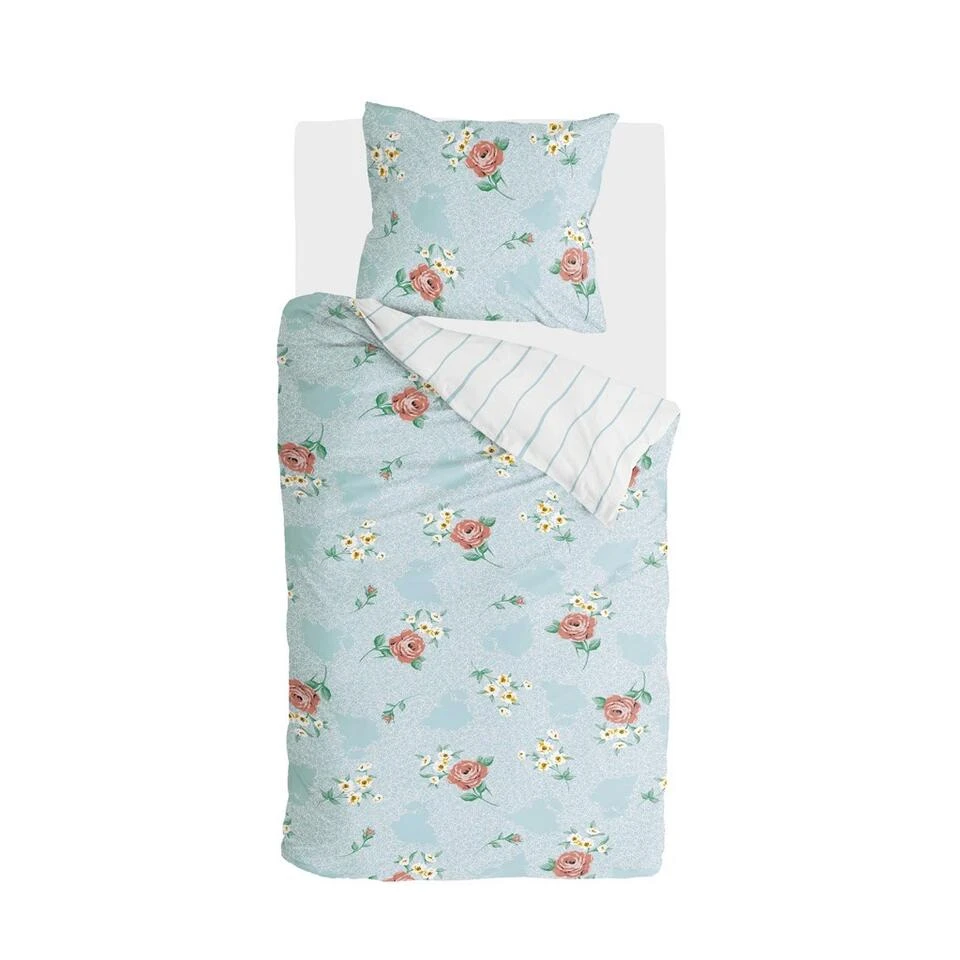 Walra Dekbedovertrek Red Roses – Eenpersoons 140×220 – 100% katoen -Blauw