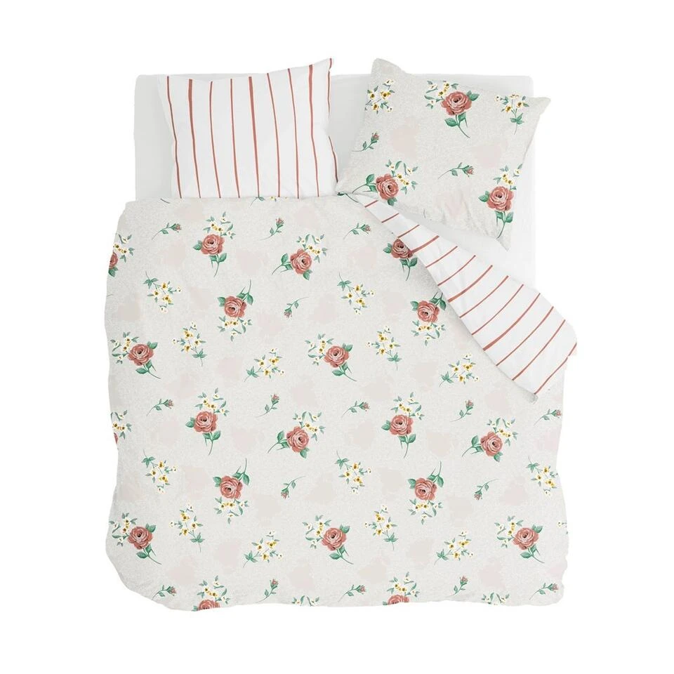 Het dekbedovertrek sluit helemaal aan bij de trend Retro Romance. Een klassiek overtrek met daarop een subtiel werkje en romantische rode rozen. De licht beige achtergrond zorgt voor een verhelderend effect en de rozen maken het geheel compleet.